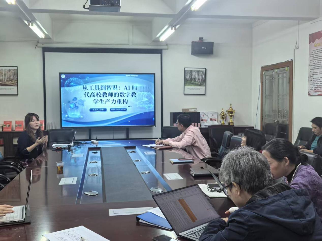 本次分享会买球官网两位教师作了主题报告。一位是大学英语部汤新煌主任,他以《立德树人,数字赋能——以“两性一度”为导向的数字教材教学改革》为题,分享了数字教材教学改革的宝贵经验。另一位是教师发展中心选派去成都参加AI智慧教学培训的商务英语系唐姗主任,她作了题为《从工具到智识:AI时代高校教师的数字教学生产力重构》的报告。