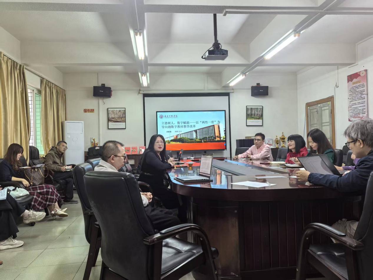 会议由外文学院陈树坤副院长主持。会议伊始,涂兵兰院长发表讲话,她对教师发展中心长期以来在学院金融素养培训班、数字化教学改革、教学竞赛及教学学术项目研究等方面给予的支持表示衷心感谢,并汇报了学院在数字化转型过程中所取得的阶段性成果。教师发展中心邢哲主任也高度评价了外文学院在青年教师培养、教学竞赛及数字化项目研究和数字教材开发中的优异表现,同时动员全体教师积极备战第六届教师教学创新大赛,聚焦材料打磨与创新实践,力争在大赛中再创佳绩。
