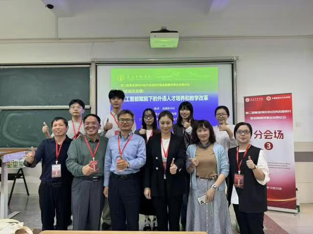 分论坛四主题为“人工智能背景下高校外语学科的数智化转型”,我校9位MTI研究生在该分论坛报告研究成果。龙心怡以高校MTI师生为调研对象,构建“AI赋能金融翻译人机协同质量评估体系”,从“信、达、雅”三维度设计12项评估指标,为MTI翻译教学质量管控提供工具。马洁容从生态翻译学视角研究《金融时报》中文网AI译后编辑,分析译者在“适应-选择”过程中的主体性作用,提出“译者主导、AI辅助”的译后编辑模式,明确译者在技术环境下的核心价值。高文慧基于功能目的论分析企业财务年报机器翻译的“信”与“达”,梳理出“数据单位误译”“专业表述偏差”等常见问题,针对性提出“术语库预训练+语境提示强化”的误译规避对策。燕会娟以“妃子笑荔枝”“五常香大米”为例,分析跨境电商场景下农产品文化意象的“失落”问题,提出“文化注释补充、意象联想重构”的翻译策略,助力农产品跨境传播中的文化价值传递。廖瑜明对比DeepSeek与贵州茅台酒厂官网对2024年度报告的英译文本,从目的论视角指出DeepSeek在货币术语等专业词汇上的适配性不足,建议企业翻译需结合国际通用标准优化AI译文。邬美意剖析AI金融隐喻翻译的“形式对应陷阱”,以“流动性陷阱”“黑天鹅事件”为例,提出“概念重构优先于形式对应”的突破路径,帮助AI更精准传递金融隐喻内涵。邓沛宜以《粤港澳大湾区发展规划纲要(2019年)》翻译为例,研究AI辅助下译者角色重构,指出译者需从“语言转换者”转向“策略设计者、质量校准者”,并梳理出译者需具备的“AI工具应用、跨文化协调”等新能力。陈慧呈结合Python情感分析技术,构建《论语》平行语料库研究翻译策略的情感考量,发现AI译文在“仁爱”“礼义”等概念的情感传递上存在偏差,提出“情感标签嵌入+人工微调”的优化方案。刘玲之基于DeepSeek开展金融文本AI辅助译后编辑实践,以银行理财产品说明书为例,总结出“术语一致性核查、句式逻辑梳理、文化适配调整”三大核心环节,可使译后编辑效率提升20%。