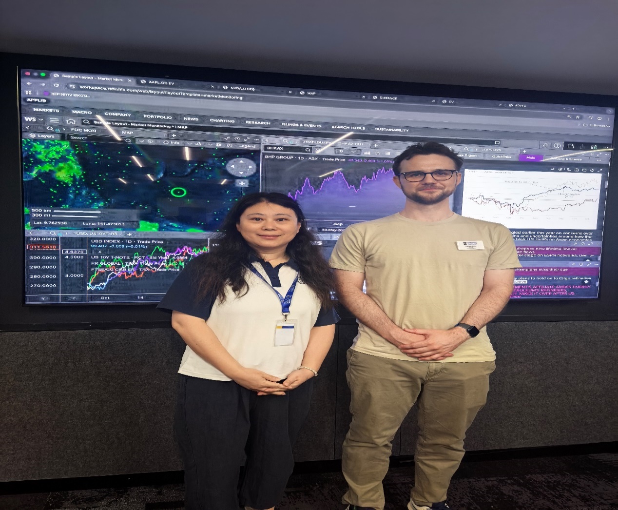 在西澳大学商学院的RosemarieNathanson金融市场交易室(The Trading Room),刘晓琴博士深入了解了彭博终端(Bloomberg Terminals)、LSEG数据库、GPS系统船舶信息数据库等国际专业数据库在教学中的应用。她认识到,当下MTI人才不仅需具备扎实的双语转换能力,还应掌握相关领域的专业数据获取与信息分析能力,这对提升财经、商务等文本翻译的专业性与准确性至关重要。