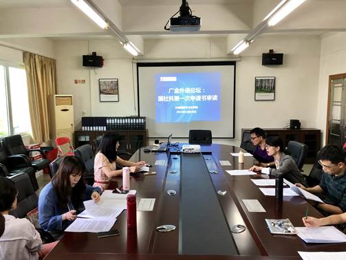 2019年11月5日下午,“广金外语论坛”国家社科基金项目申报书第一次审读会于外文学院会议室举行。外文学院多名青年教师参加了本次论坛,并对陈树坤、温穗君和刘晓琴三位博士的申请书进行审读,会议取得了预期效果。