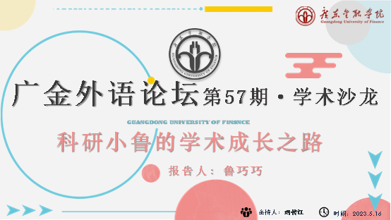 2023年5月16日晚19:00,买球官网广金外语论坛第57期·学术沙龙顺利在线举行,买球官网大学英语部鲁巧巧老师主讲,分享其课题申报、论文发表与海外申博的心路历程。