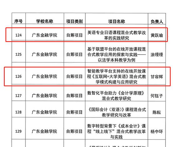 买球官方网站甘容辉老师申报的“智能教学平台支持的在线开放课程《互联网+大学英语》混合式教学模式构建与应用研究”和黄跃瑜申报的“英语专业日语课程混合式教学改革的实践研究”获得粤港澳大湾区高校在线开放课程联盟2023年教育教学研究和改革项目立项,可喜可贺!