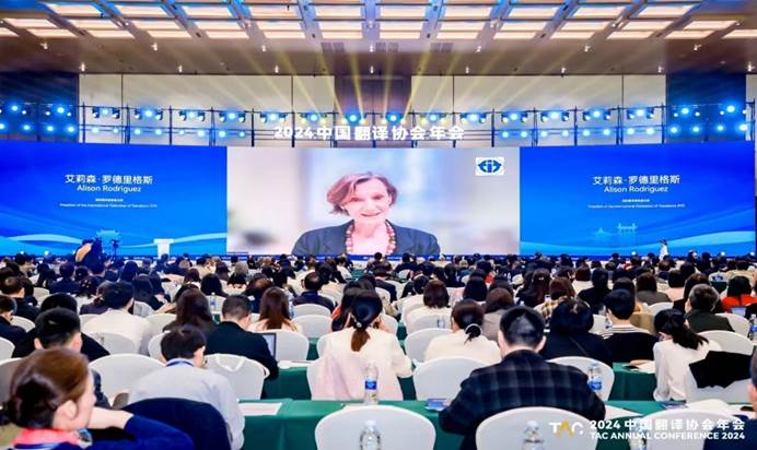 3月30日-31日,2024中国翻译协会年会在湖南长沙国际会议中心隆重召开。此次年会由中国外文局、中共湖南省委宣传部、中共湖南省委外事办、湖南省教育厅指导,中国翻译协会、中国外文局翻译院和湖南师范大学共同主办。中国外文局局长、中国翻译协会会长杜占元,中共湖南省委常委、省委宣传部部长杨浩东,湖南师范大学党委书记、中国翻译协会常务副会长、全国翻译专业学位研究生教育指导委员会副主任委员蒋洪新出席开幕会并致辞,国际翻译家联盟主席艾莉森·罗德里格斯(Alison Rodriguez)通过视频方式致辞。中国翻译协会常务副会长兼秘书长、中国外文局副局长兼总编辑高岸明主持会议。近千名来自中央国家机关、企事业单位、高等院校、科研机构以及翻译行业的代表参加了此次年会。