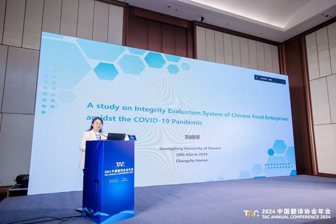 论坛中,多位专家学者就财经金融翻译领域的多个议题进行了深入研讨。买球官网教师陈树坤、邓薇、汤新煌、刘晓琴和杨贵章等参加了此次论坛,并分别就财经报道中的隐喻识解机制、金融翻译的文献计量学分析、人工智能技术视域下财经金融翻译教学改革、中国食品企业的诚信评价体系、“语境参数理论”视阈下的汉语新闻机器英译等话题进行了发言,向与会专家分享了自己的最新研究成果。其中,刘晓琴博士全程用英文介绍了自己如何运用SPSS25.0和AMOS等统计工具对疫情期间中国食品企业诚信评价体系进行的研究,向与会专家展示了自己深厚的跨学科研究功底,其流畅的英文也给与会专家留下了深刻的印象。