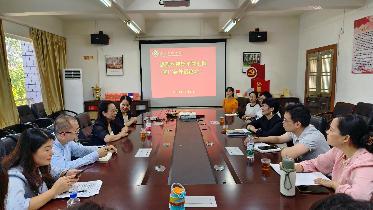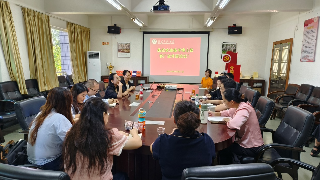 10月21日上午,《中国翻译》杂志主编、中国翻译研究院副院长杨平博士莅临买球官网,在外文学院的会议室2417与学院领导及部分教师进行了主题为“漫谈研究论文选题及其它”的精彩座谈。
