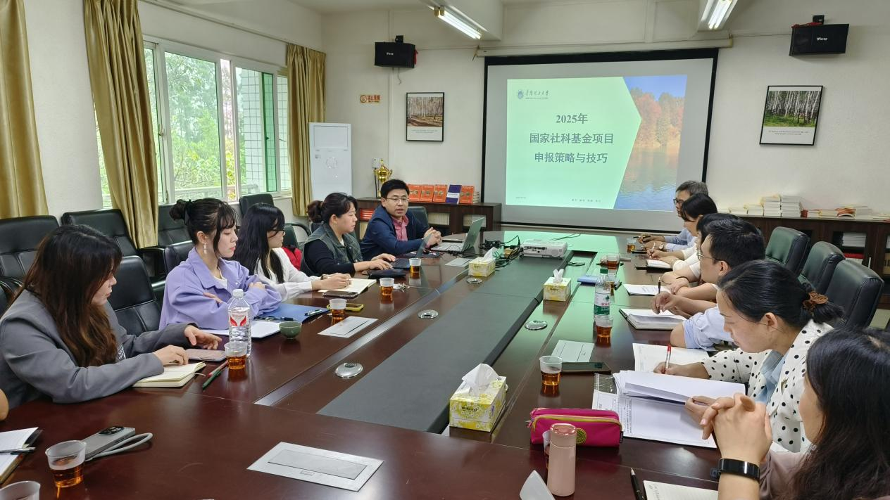 11月19日,华南理工大学外国语学院副院长、博士生导师武建国教授应邀作客广金外语论坛,向买球官网教师传授国家社科基金项目申报策略与技巧。本次论坛由MTI教育中心刘传江主任主持,涂兵兰院长总结。