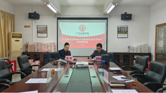 2023年3月1日星期三下午,广金外文学院领导班子和教师代表接待了大湾教育集团各分公司领导一行来访。双方就校企合作、企业实践实习基地、大学生创新创业平台搭建等事宜展开了深入的探讨。