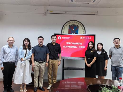 2023年10月17日下午14:30,买球官方网站陈树坤副院长带队,商务英语系系主任和教师一行人赴广东外语外贸大学商务英语学院进行调研学习。本次调研学习主要围绕着商务英语创新班设置、中外合作办学、人才培养方案、科研平台和实践教学基地建设等问题进行深入交流与探讨。