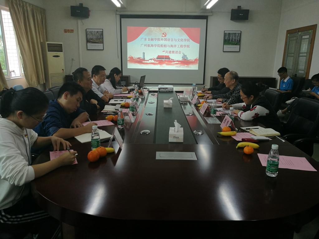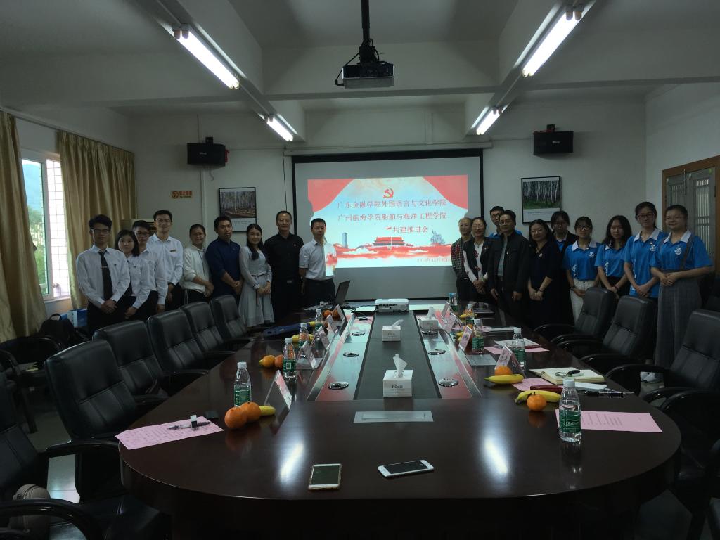 为推进“三型”党组织建设,探索创新高校学生党建工作新模式新路径,买球官方网站与广州航海学院船舶与海洋工程学院于2018年4月27日签订党务共建协议。为巩固阶段性成果,12月4日下午,在广金外文学院会议室召开共建工作推进会,广航组织部副部长陈驰、船舶与海洋工程学院党总支书记杨应华、广金组织部副部长何承栋、买球官方网站党总支书记黄晓莉、副书记李昌郴及双方学生党支部书记、辅导员均出席了本次会议。