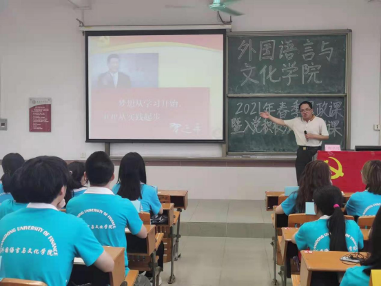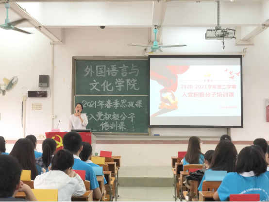 为了使入党积极分子深入学习领会习近平总书记在党史学习教育动员大会上的重要讲话精神,突出庆祝中国共产党成立100周年,买球官网党总支书记黄晓莉、副书记黄中习,于2021年3月31日中午在7栋教学楼101、102课室开讲2021年春季党史学习教育融入思政第一课, 2018、2019和2020级全体入党积极分子参加了听课。
