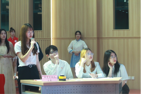 比赛尾声,外文学院党总支黄晓莉书记对活动进行了点评。书记对此次参赛选手的表现给予了肯定。且强调党史、国史中蕴含着治国理政的瑰宝,是先行者们从实践经验中提炼出来的立国、兴国智慧。作为当代大学生,应该要进一步增强现实关怀,发挥历史研究经世致用的作用。作为新时代的党员,应当充分学习党史知识,传承先烈不朽精神。学史明志,学史致知,站在“两个一百年”的历史交汇点上,为国家新征程奉献而奋斗。