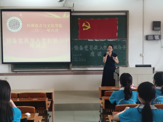 6月16日中午12:30,外文学院党总支黄晓莉书记在7栋202开展党课专题教育。预备党员和入党积极分子们参与了此次党课专题教育。学生第一党支部书记王丹老师和第二党支部书记邓粲士老师出席了党课。