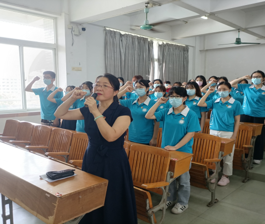 此次党课专题教育围绕《我们为什么入党》这个主题进行。第一个环节,黄晓莉书记用她的工作经验、人生阅历,诠释出了各个观点,内容充实而深刻,极具思想性,在课上黄书记分析什么是入党动机,让广大学员端正入党动机,提高党的先进性及纯洁性,鞭策学员们努力学习奋斗,增强学员的爱国热情和振兴祖国的责任感和使命感,对学生党员有重大的教育意义。第二个环节,举行新党员入党宣誓仪式。31名学生新党员面向党旗,在黄书记的领誓下进行了庄严的宣誓。