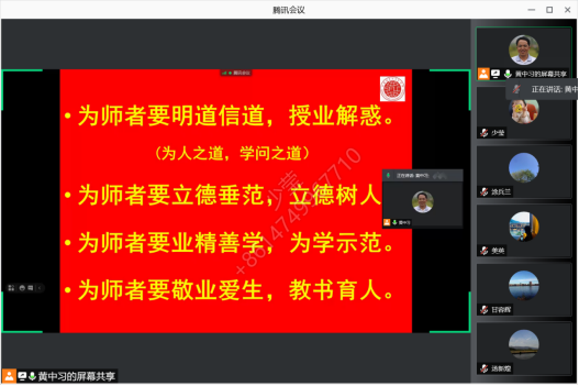接着,院长黄中习就狠抓师德师风建设做了补充发言,他指出师德师风建设是贯彻落实习近平总书记“教师队伍素质直接决定着办学能力和水平”“评价教师队伍素质的第一标准应该是师德师风”的要求,师德能带动学生的思想道德建设,师风能带动学校教风、学风、校风和行风,抓师德师风建设就抓住了教育教学的根本。会议要求全体教工要提高政治站位,切实认清开展师德师风建设的重要性,切实开展好师德师风建设的各项工作,全面提升师德师风整体水平,不断开创学校教育事业改革发展新局面,为办好人民满意的高等教育作出更大贡献。