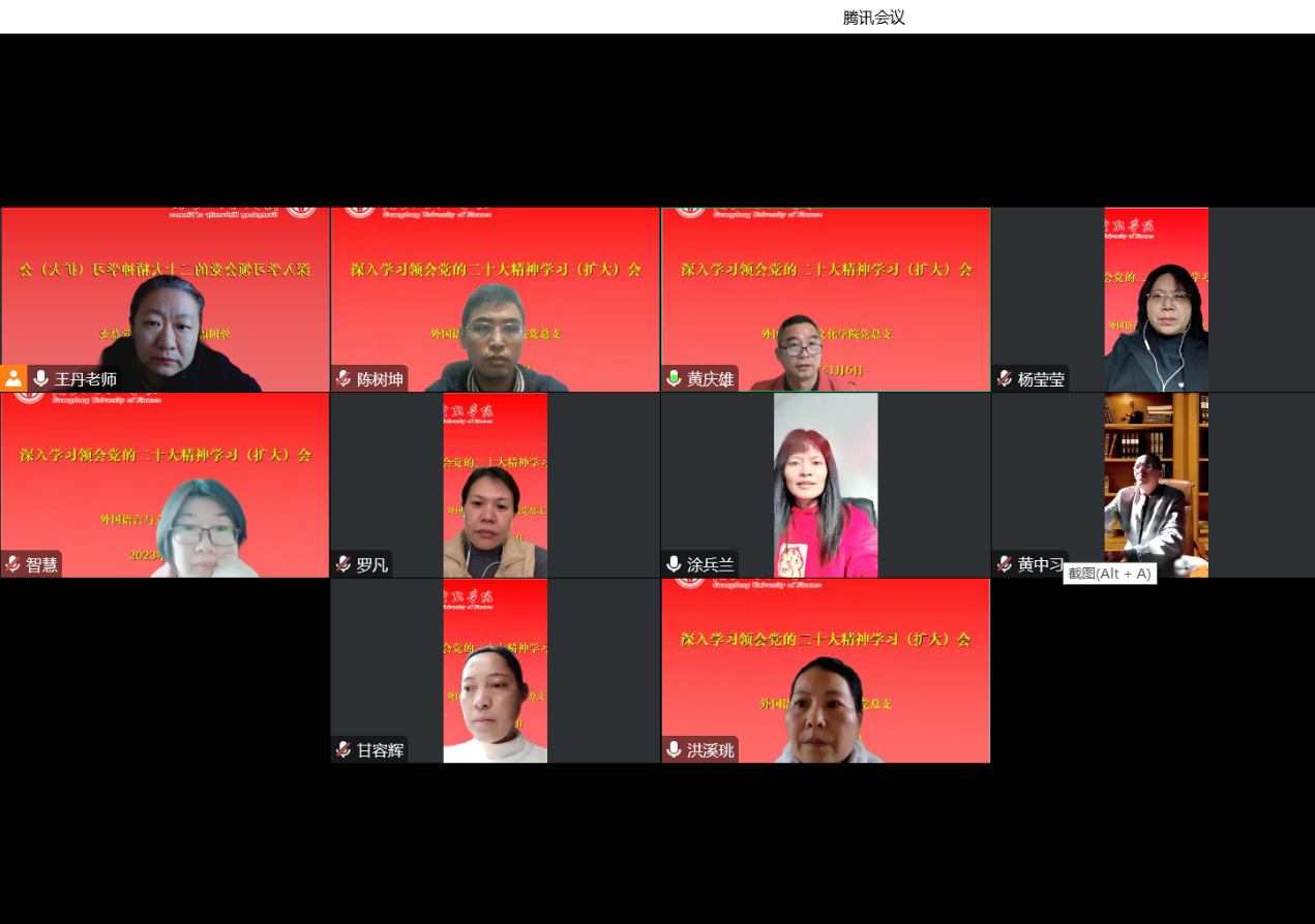2023年1月6日,买球官方网站党总支在腾讯会议召开扩大会议,深入学习党的二十大精神,切实把思想和行动统一到党的二十大精神上来。学院领导班子、党总支委员出席了会议。