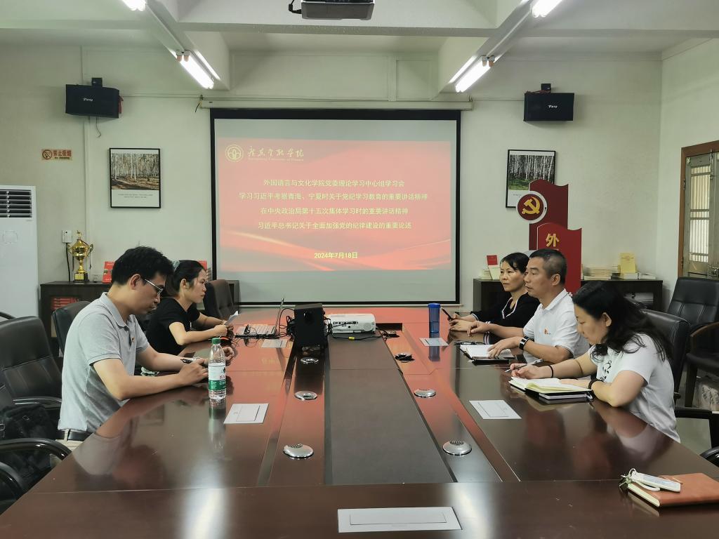 会上,黄庆雄书记带领中心组成员认真学习贯彻习近平总书记在主持中央政治局第十五次集体学习时的重要讲话,习近平总书记考察青海、宁夏时关于党纪学习教育的重要讲话精神以及关于全面加强党的纪律建设的重要论述。会议强调,中心组成员要认真学习领会习近平总书记重要讲话精神,深入推进全面从严治党和党的自我革命,做到学纪、知纪、明纪、守纪。参会人员结合学院工作实际分别做了交流发言。