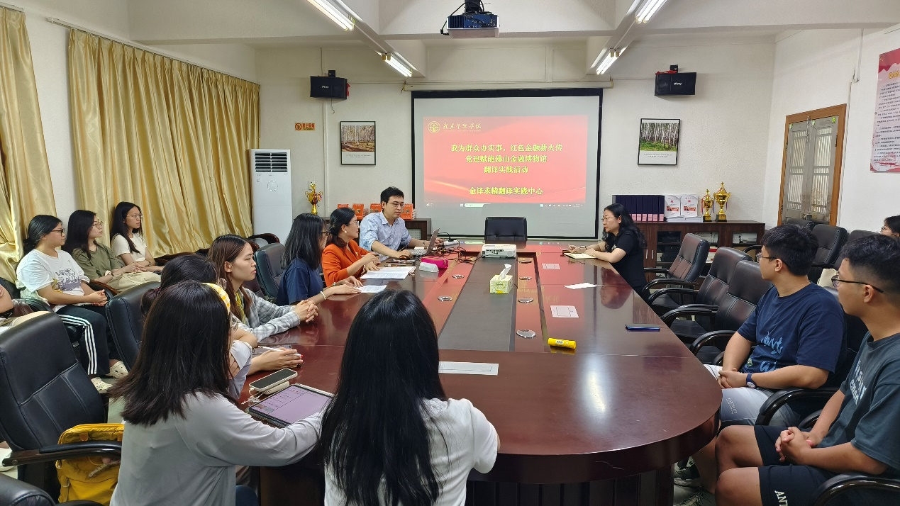 6月3日,买球官方网站联合“金译求精”翻译实践中心,在学院会议室召开主题为“我为群众办实事,红色金融薪火传:党建赋能佛山市岭南金融博物馆翻译实践活动”的专题会议。会议旨在通过党建引领,推动翻译实践活动与思想政治教育深度融合,助力学生在实践中传承红色金融文化。