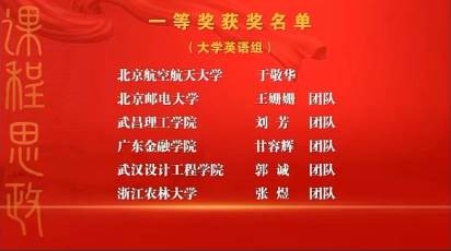 我校买球官方网站甘容辉老师团队(翁佳炀、夏娟、李海燕)在“2022年外语课程思政优秀教学案例全国交流活动”中荣获大学英语组全国一等奖。