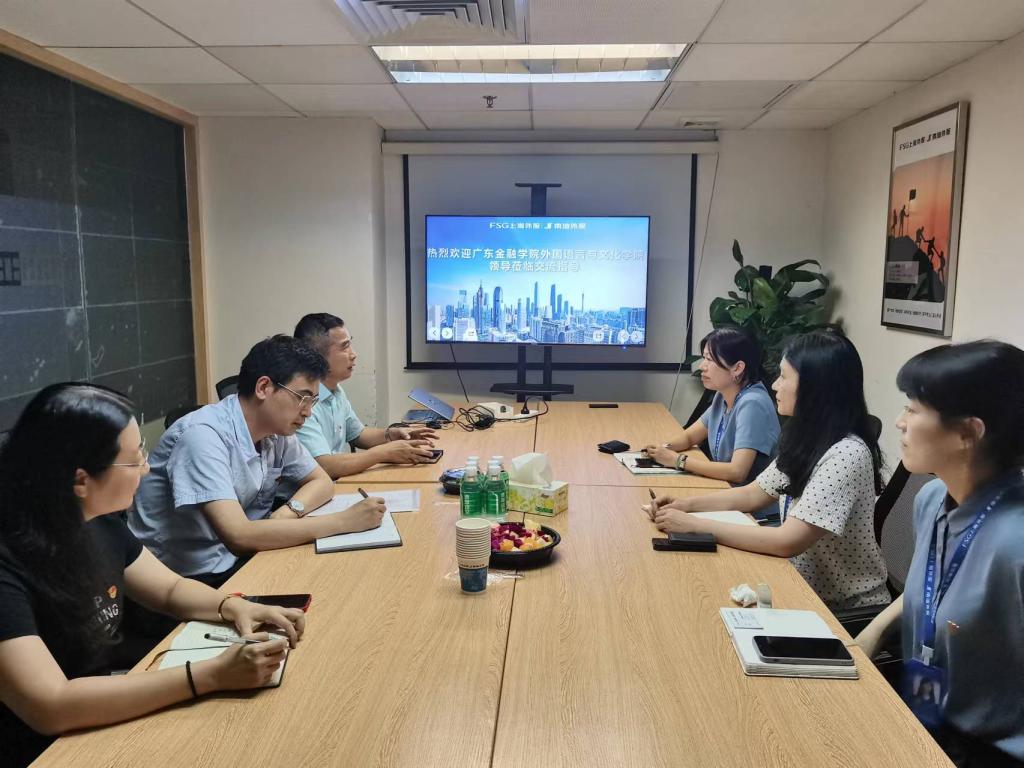 纪薇副总经理对学院领导一行表示热烈欢迎,并感谢学院在第133届广交会期间对公司工作的大力支持,对外文学院的人才培养机制、学生素质给予了高度评价。她表示,公司也希望与学院达成一种合作机制,在学生实习和就业方面长期合作,在人才培养、实习就业等方面实现共赢。韩洁瑜经理重点介绍了10月份秋交会公司实习岗位的预计需求,并就未来学生在实习见习、就业等方面为外文学子提供更多的岗位。双方就暑期实习和秋季广交会实习等达成初步意向。
