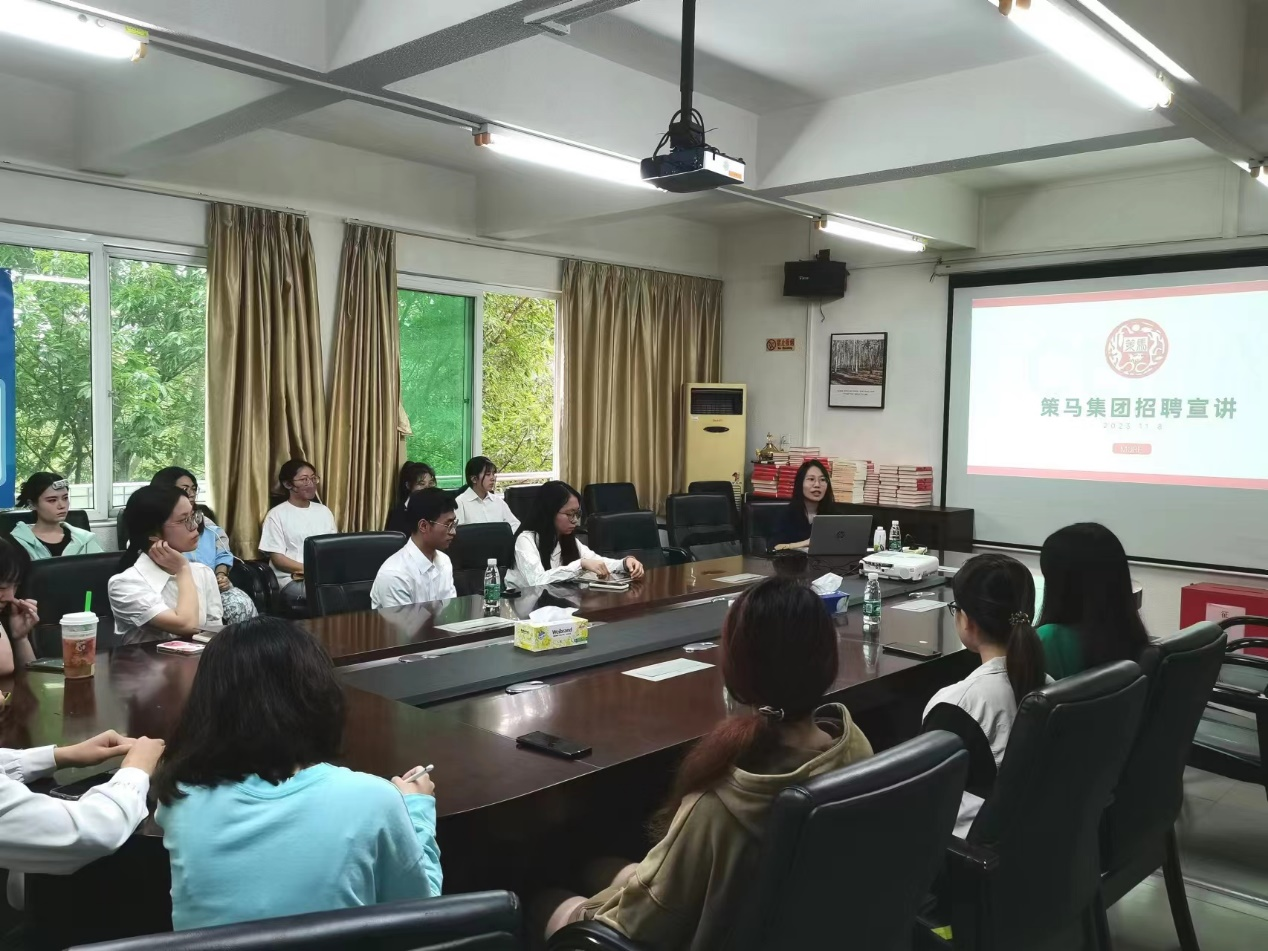 座谈会上,黄庆雄书记和陈树坤副院长分别介绍了学院的学科建设、师资力量和人才培养方向以及学院对翻译人才、师资培养的一系列举措和相关需求。黄庆雄书记表示,希望与策马集团建立多层次的校企合作,在实现人才协育的同时,双方共享共赢发展。策马集团尹利珍总监对外文学院的翻译人才培养理念表示高度认可,并介绍了策马集团发展历程以及集团的翻译和培训业务。她表示,策马愿发挥自身所长,为外文学院的同学们创造实习、实践机会,与学院一道共同培养优质的专业人才。随后,尹总监向买球官网2024届毕业生就毕业招聘过程中的有关问题进行宣讲。