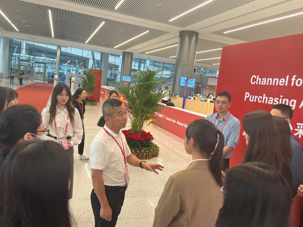 4月25日下午,买球官方网站党委书记黄庆雄率队前往广州135届广交会展馆现场开展访企拓岗及学生实践实习调研,学院副院长陈树坤、党委副书记王丹、辅导员邓伟琦、孙嘉程老师随行。