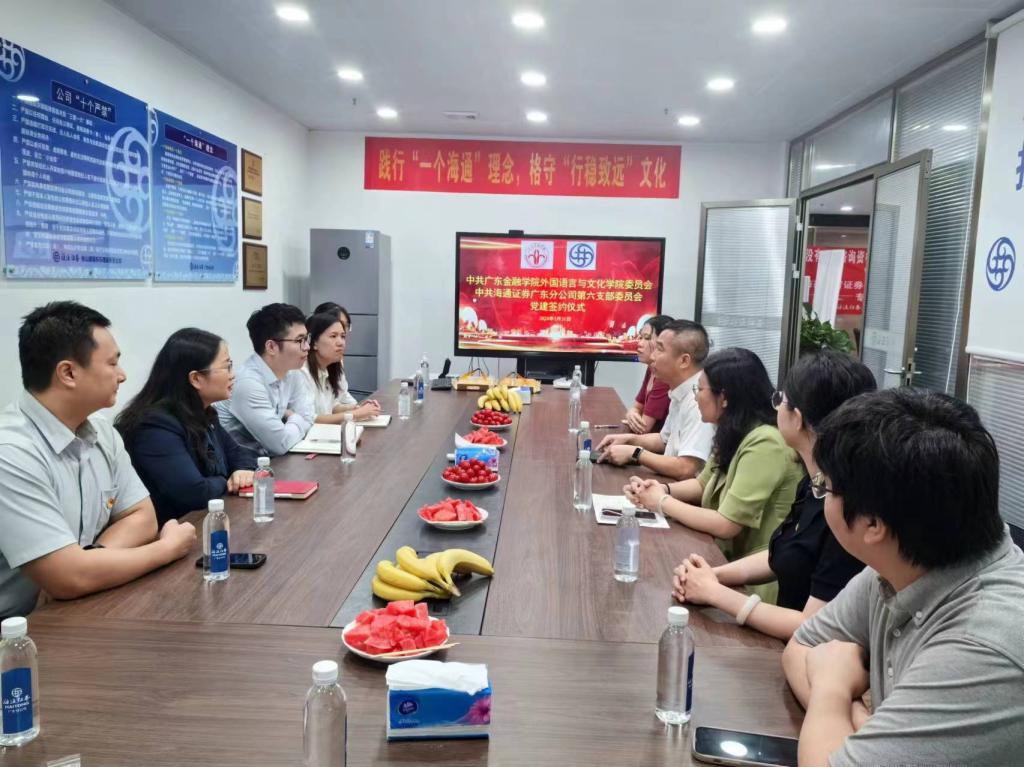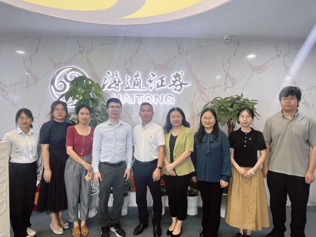为贯彻落实党中央、国务院关于“稳就业”“促就业”决策部署,更好地把教育部“访企拓岗促就业专项行动”落到实处,5月31日上午,买球官方网站党委书记黄庆雄带领学工队伍一行赴海通证券佛山顺德东乐路营业部开展党建共建活动和访企拓岗合作洽谈,促进大学生充分高质量就业。海通证券顺德营业部总经理胡南涛,营业部营销总监、海通证券股份有限公司广东分公司第六支部书记宋燕飞和支部辖属中山营业部负责人、预备党员阮伟明,党员李玉萍同志等出席了交流座谈。外文学院党委副书记王丹及全体辅导员随行参会。