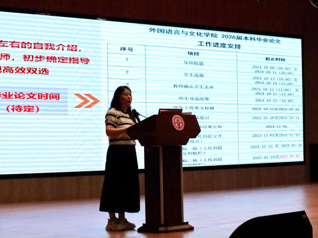 刘晓琴老师结合多年的指导论文经验从论文选题方向、撰写要求、时间安排、论文格式以及重要注意事项五个方面一一解读,提醒同学们要"早启动、勤沟通、多修改",并对论文查重、格式规范、学术诚信等关键问题进行了重点说明,要求同学们严格遵守学术道德,杜绝学术不端行为,引导同学们要明确把自己放在撰写毕业论文第一责任人的职责位置上。