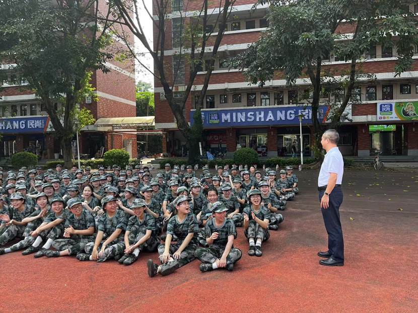 9月12日,在秋日的阳光中,外文学院党委书记黄庆雄带队,党委副书记王丹、辅导员李玉杰随行一同前往南操场,看望正在刻苦训练的外文学院2024级新生学子。黄庆雄首先向军训教官表示诚挚的感谢,对教官们严谨的教学态度和辛勤的付出给予了高度评价。随后,他亲切地询问了2024级学子们的军训生活情况,包括身体状况、饮食以及训练进展等,并鼓励他们要勇于挑战自我,珍惜军训这段宝贵的经历,通过军训磨砺意志、锻炼体魄、提升自我。王丹副书记和李玉杰老师也逐一与新生们交流,了解他们的困难和需求,领导老师的关怀如同一股暖流,温暖了每一位新生的心田,也进一步激发了他们参与军训的热情和动力。