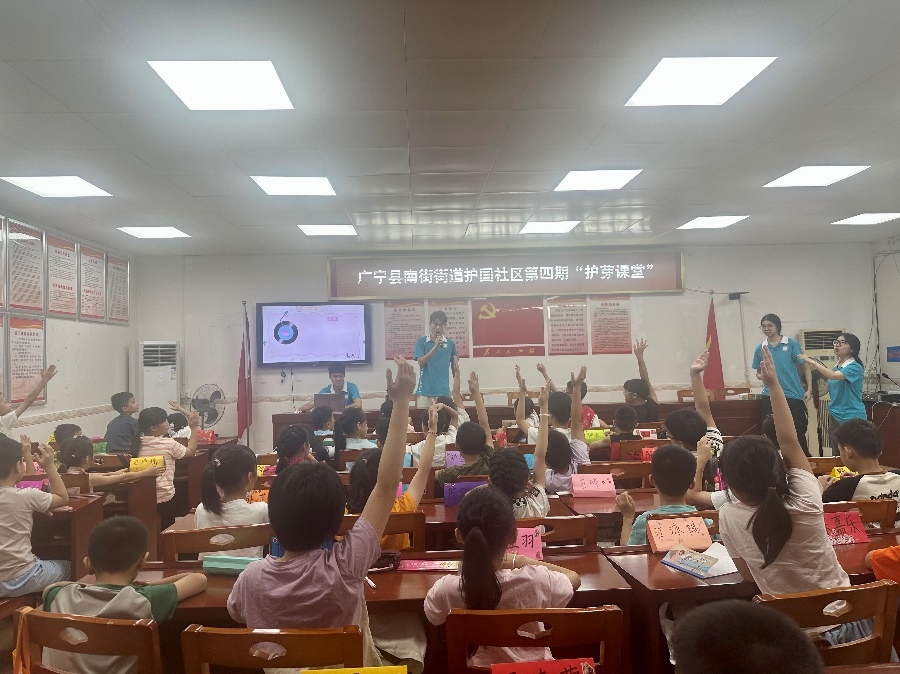 本次外文学院百千万工程志愿服务队以“星光同行”为主题,聚焦护国社区的儿童需求,开展名为“护芽课堂”的多元化教学活动,通过唱红歌、讲红色故事、玩游戏、做非遗手工等方式,进一步丰富了学生的假期生活,培养学生的兴趣爱好,促进青少年健康成长。