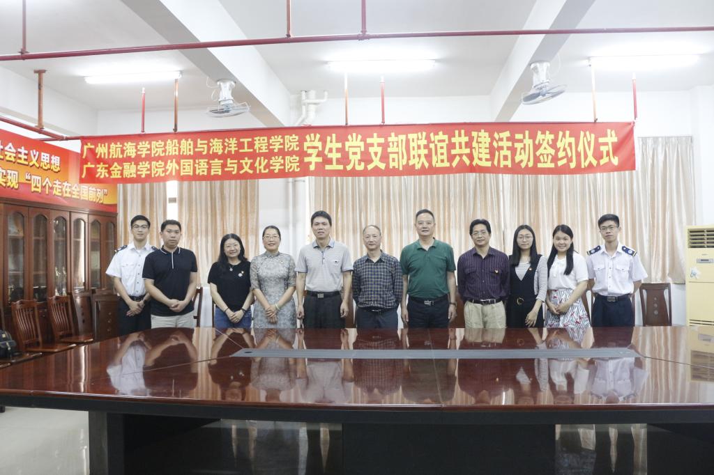 广航党委委员、组织部部长陈燕龙、船舶与海洋工程学院党总支书记杨应华、广金组织部副部长何承栋、买球官方网站党总支书记黄晓莉、副书记李昌郴及双方学生党支部书记出席了本次仪式。