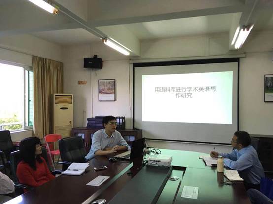 2019年10月29日下午,外文学院举行“广金外语论坛”,邀请刘晓琴、钟泽楠和陈树坤三位在SSCI刊物发表过论文的教师分享英文学术论文写作和国外投稿经验,系部主任、青年博士以及新进教师等20余人参加了本次论坛。