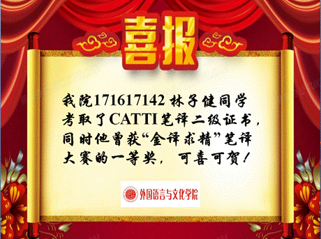 喜报:买球官网171617142 林子健同学考取CATTI笔译二级证书