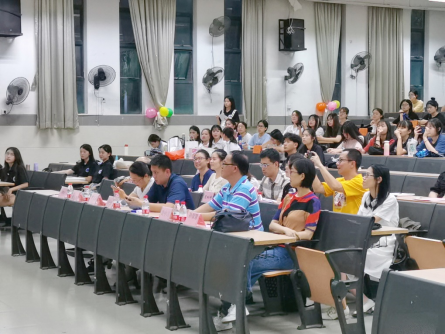 看完三组选手精彩的展示后,现场进入短暂的互动环节。本次大赛的互动环节紧扣“国风新潮流”主题,用诗词飞花令唤起同学们对诗词的记忆,全体观众们沉浸在诗词的盛宴中。