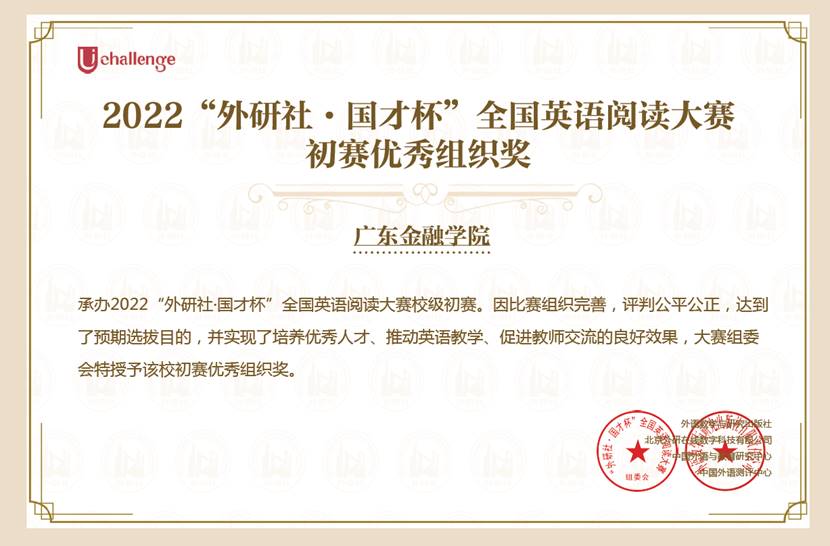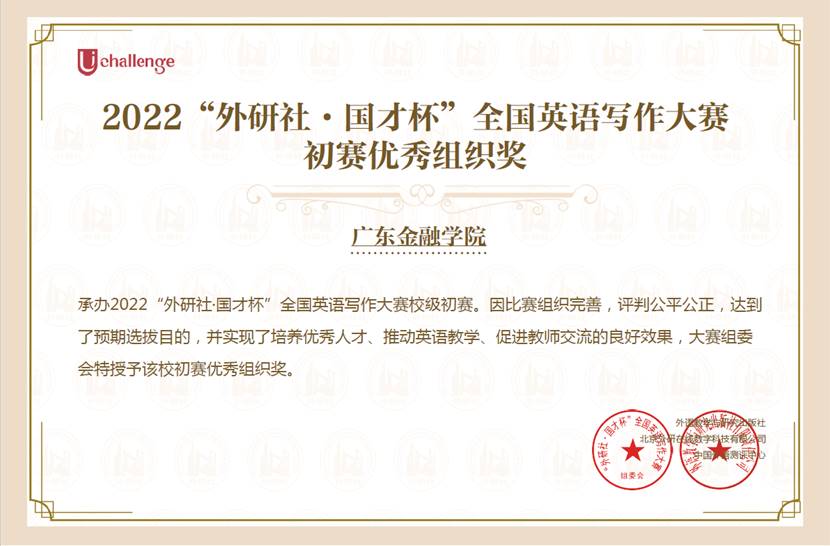 买球官网获得2022“外研社·国才杯”全国英语阅读写作大赛初赛优秀组织奖