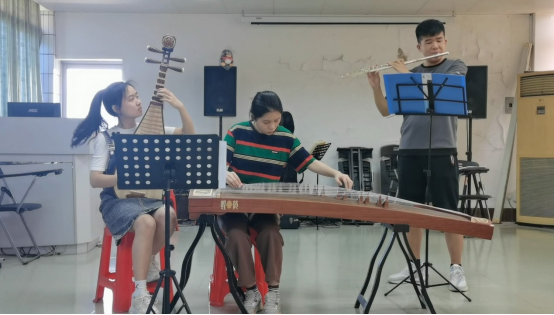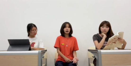 图为部分小组录制参赛视频的照片: