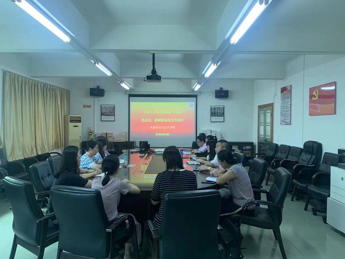 9月27日下午,外文学院召开新一届系教研室主任工作会议,外文学院院领导班子和新任系/教研室主任参加了本次工作会议。