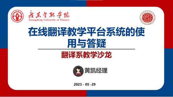 2023年5月29日晚,翻译系举行线上教学沙龙,特邀成都优译信息技术股份有限公司的产品顾问黄凯经理,系统全面介绍在线翻译教学平台系统的使用,包括如何利用平台进行翻译应用、课程教学、建立平行语料库以及实现无纸化考翻译系主任邓薇主持,外试等等,进行了平台演示,并就老师们的相关问题进行答疑。外文学院近20名教师参加。