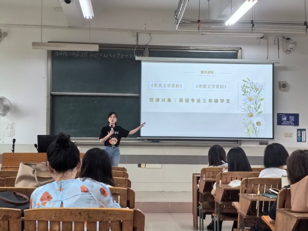 余薇副教授的分享主题是“与文学同行——基于OBE理念的外国文学课程教学交流”,分享从“何为美”入手,在当前信息爆炸的年代,启发学生“慢”下来,用“心”感受身边的美,感受文学作品带给人们的心灵冲击,分享的内容还包括学生能力培养、分析与批判性思维、文学研究能力、沟通创作能力、比较文学视野。余薇老师用丰富的专业知识带领学生在课堂上学习专业文学知识的同时,而且拓宽了学生的文学视野,提升学生综合实力。