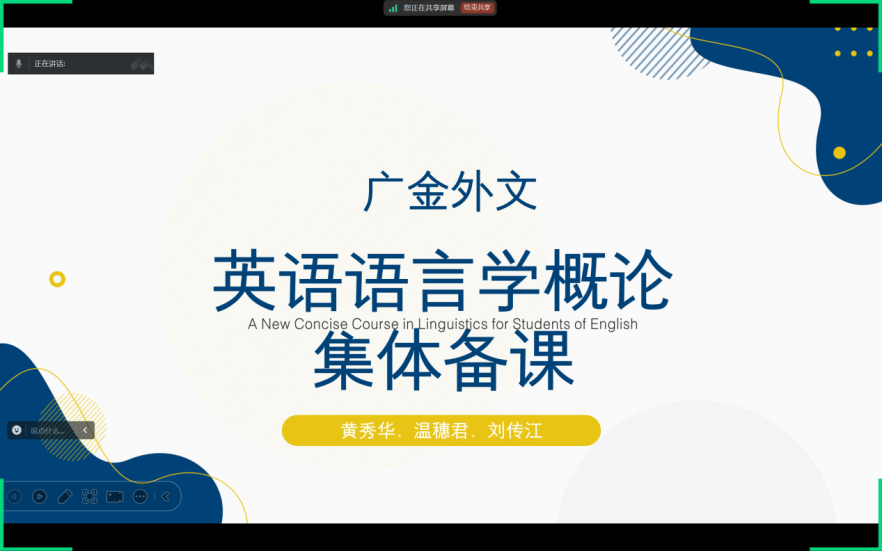 在《英语语言学概论》的备课中,刘传江、温穗君、黄秀华等三位老师深入探讨了句法学的教学设计,通过互动式教学和多媒体辅助,激发学生对语言结构的深刻理解。