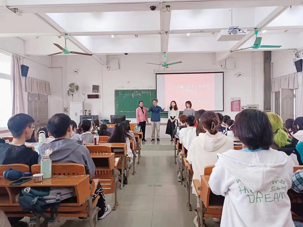 2024年3月16日,买球官方网站在广州校区7栋402室举行第一期英语强基开班启动仪式。甘容辉副院长、刘传江主任、李慕琪、王从遥老师及两个强基班的全体学生参加了开班仪式。