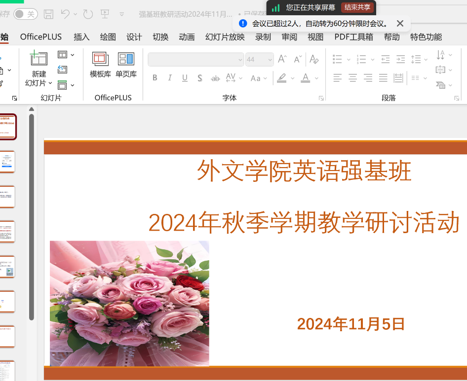 2024年11月5日,买球官方网站英语强基班教学研讨活动圆满举行。此次活动聚焦于强基班的教学要求、目标及未来发展蓝图,旨在进一步提升教学质量,满足学生个性化发展和升学、就业等多样化学习需求。外文学院院长涂兵兰、副院长甘容辉以及刘传江、王从遥、夏娟、李慕祺、魏渊渊、林颖姿等教师出席了本次研讨会。