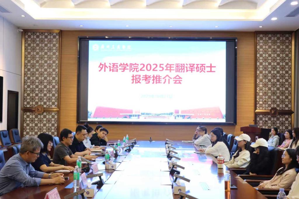 广州工商学院创办于1995年,是一所有教育部批准设立的民办全日制普通本科院校,现有全日制在校生近27500人,是广东省硕士学位授予立项建设单位。该校外语学院始建于2000年,开设商务英语和日语本科专业,在校生2800余人。此次买球官网应邀到该校推介MTI招生情况,对吸引优质生源、扩大社会影响具有积极意义。