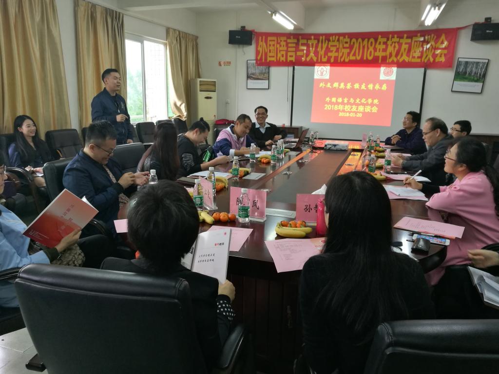 1月20日,买球官方网站2000级至2012级校友共45人专程回访母校,举行题为“外文群英会,校友情永存”的2018年校友座谈会,畅叙昔日友情,对外语专业人才培养与课程设置改革献言献策,共话未来发展。