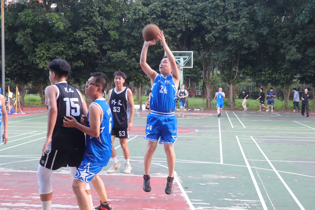 10月16日下午四点,外文学院第五届“校友杯”篮球赛在学校篮球场举行。赛场上,校友们和在校学生们组成的队伍展开了一场激烈的角逐。双方队员们个个精神抖擞,奋力拼搏。他们在球场上奔跑、跳跃、投篮,展现出了良好的竞技状态和团队协作精神。校友们虽然离开校园多年,但他们的球技依然不减当年,每一次进攻和防守都充满了激情。在校学生们也不甘示弱,积极防守,勇敢进攻,为观众们带来了一场精彩的比赛。